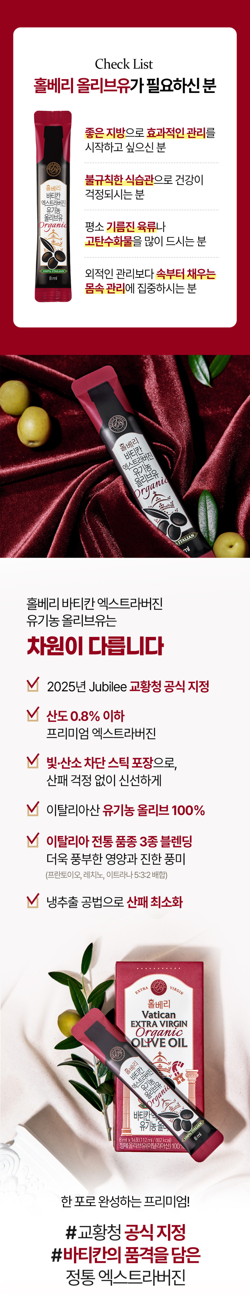 [Holberry] Vatican Extra Virgin Organic Olive Oil (8ml × 14 packets)