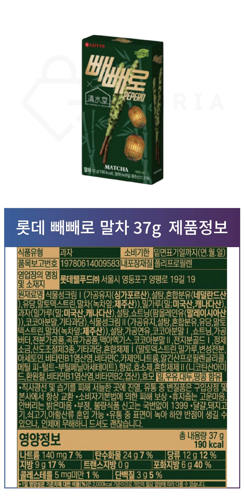 [롯데] 빼빼로 말차 37g