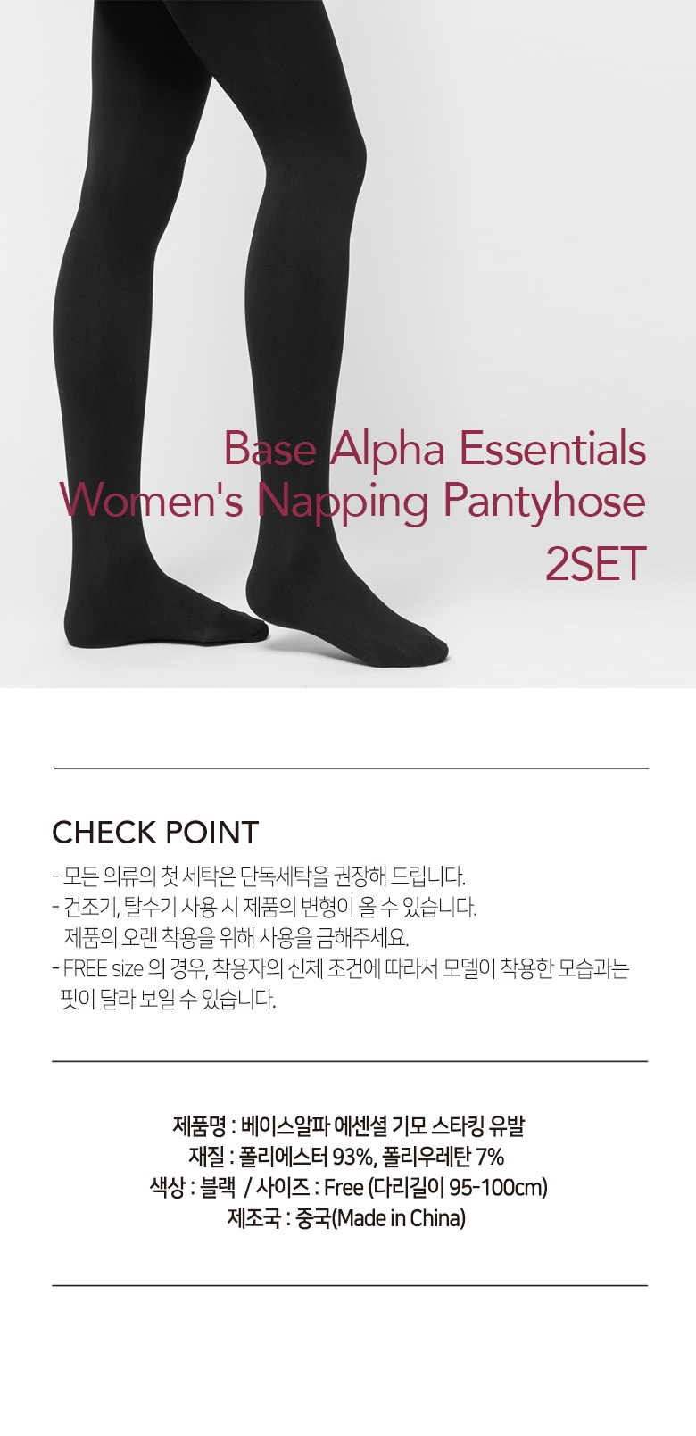 [베이스알파에센셜] 기모 스타킹 유발 2p - 블랙